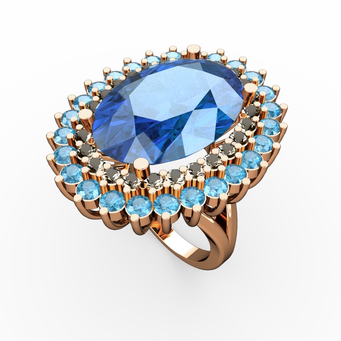 Akuamarin ve dumanlı kuvars 925 ayar rose altın kaplama gümüş yüzük