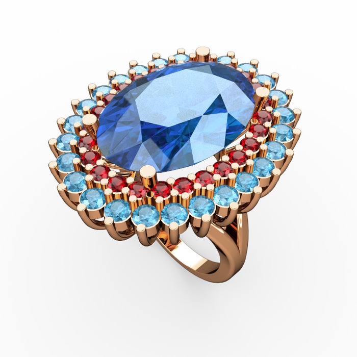 Akuamarin ve garnet 18 ayar rose altın yüzük