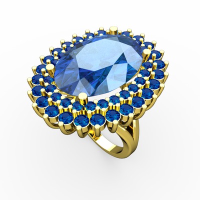 Akuamarin ve lab safir 14 ayar altın yüzük