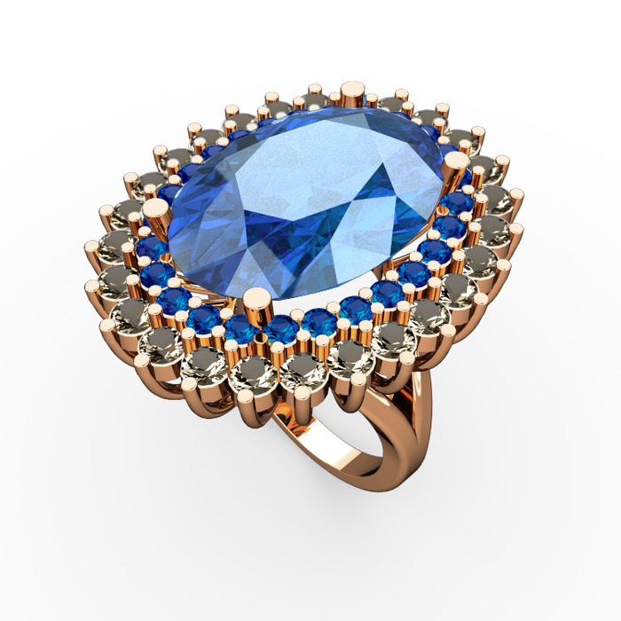 Akuamarin, lab safir ve dumanlı kuvars 925 ayar rose altın kaplama gümüş yüzük