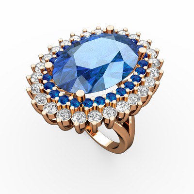 Akuamarin, lab safir ve pırlanta 18 ayar rose altın yüzük (1.56 karat)