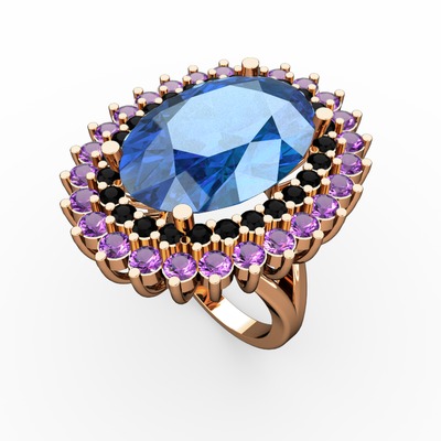 Akuamarin, siyah zirkon ve ametist 925 ayar rose altın kaplama gümüş yüzük