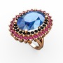 Akuamarin, siyah zirkon ve rodolit garnet 14 ayar rose altın yüzük