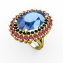 Akuamarin, siyah zirkon ve rodolit garnet 8 ayar altın yüzük