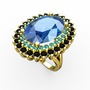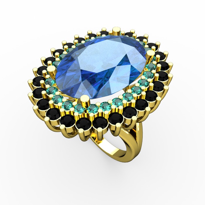 Akuamarin, yeşil kuvars ve siyah zirkon 14 ayar altın yüzük
