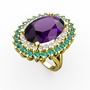 Ametist, beyaz zirkon ve yeşil kuvars 14 ayar altın yüzük