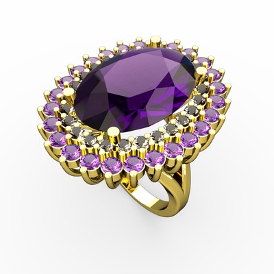 Ametist ve dumanlı kuvars 14 ayar altın yüzük