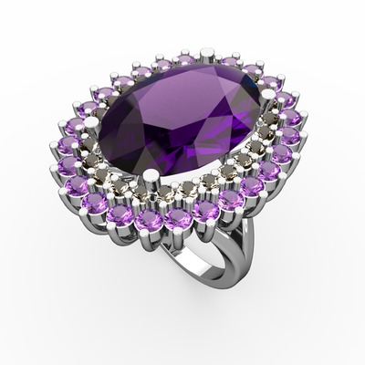 Ametist ve dumanlı kuvars 925 ayar gümüş yüzük