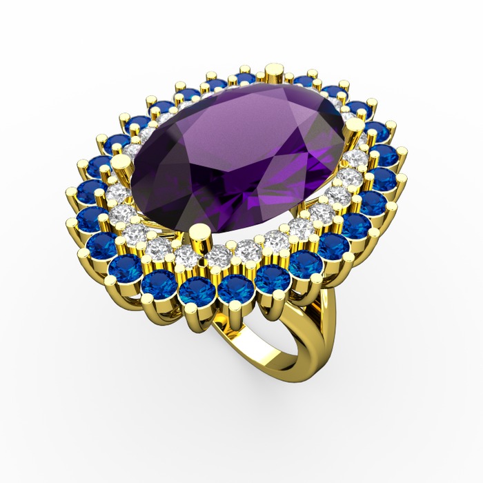 Ametist, pırlanta ve lab safir 18 ayar altın yüzük (0.936 karat)