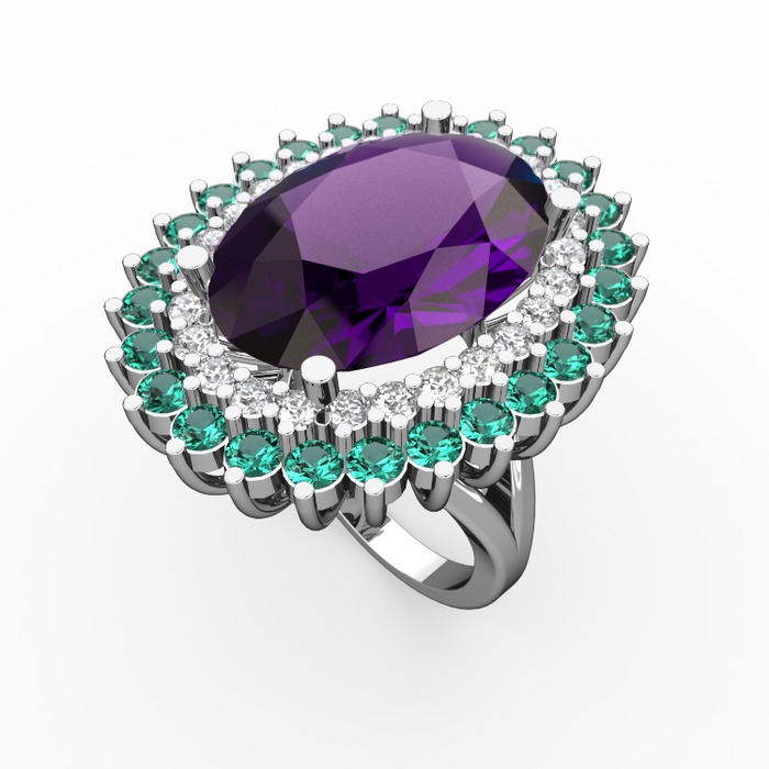 Ametist, pırlanta ve yeşil kuvars 14 ayar beyaz altın yüzük (0.936 karat)