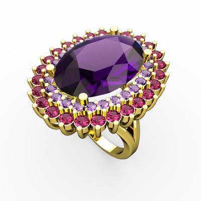 Ametist ve rodolit garnet 8 ayar altın yüzük