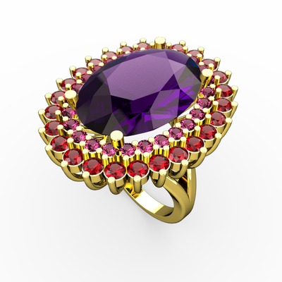 Ametist, rodolit garnet ve garnet 14 ayar altın yüzük