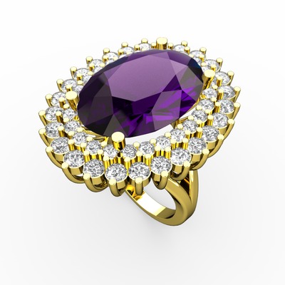 Ametist, swarovski ve pırlanta 14 ayar altın yüzük (1.56 karat)