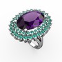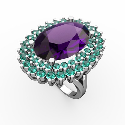 Ametist ve yeşil kuvars 18 ayar beyaz altın yüzük