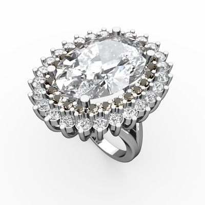 Beyaz zirkon, dumanlı kuvars ve pırlanta 14 ayar beyaz altın yüzük (1.56 karat)