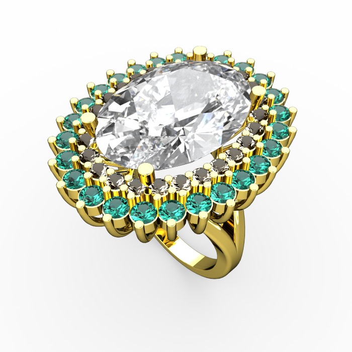 Beyaz zirkon, dumanlı kuvars ve yeşil kuvars 14 ayar altın yüzük