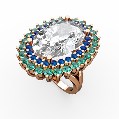 Beyaz zirkon, lab safir ve yeşil kuvars 18 ayar rose altın yüzük