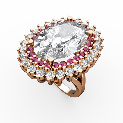 Beyaz zirkon ve rodolit garnet 8 ayar rose altın yüzük