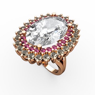 Beyaz zirkon, rodolit garnet ve dumanlı kuvars 14 ayar rose altın yüzük