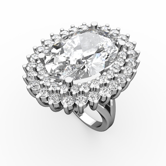 Beyaz zirkon, swarovski ve pırlanta 14 ayar beyaz altın yüzük (1.56 karat)