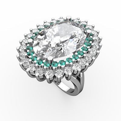 Beyaz zirkon ve yeşil kuvars 18 ayar beyaz altın yüzük