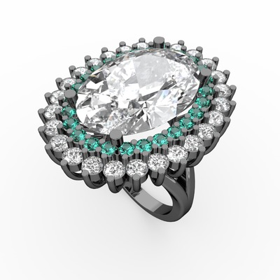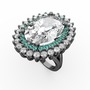 Beyaz zirkon, yeşil kuvars ve pırlanta 925 ayar siyah rodyum kaplama gümüş yüzük (1.56 karat)