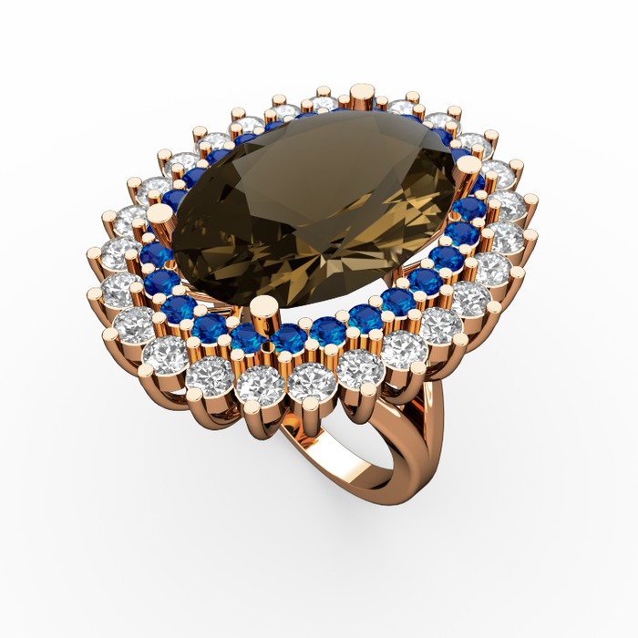 Dumanlı kuvars, lab safir ve beyaz zirkon 18 ayar rose altın yüzük