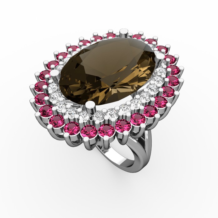 Dumanlı kuvars, pırlanta ve rodolit garnet 925 ayar gümüş yüzük (0.936 karat)
