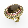 Dumanlı kuvars ve rodolit garnet 18 ayar altın yüzük