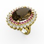 Dumanlı kuvars, rodolit garnet ve beyaz zirkon 8 ayar altın yüzük