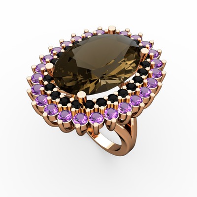 Dumanlı kuvars, siyah zirkon ve ametist 925 ayar rose altın kaplama gümüş yüzük