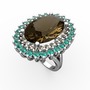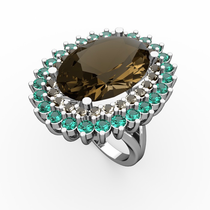 Dumanlı kuvars ve yeşil kuvars 8 ayar beyaz altın yüzük