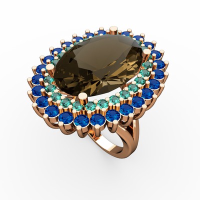 Dumanlı kuvars, yeşil kuvars ve lab safir 18 ayar rose altın yüzük