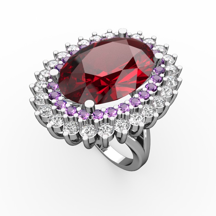 Garnet, ametist ve pırlanta 8 ayar beyaz altın yüzük (1.56 karat)