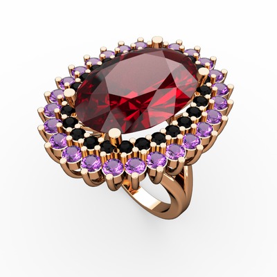 Garnet, siyah zirkon ve ametist 8 ayar rose altın yüzük
