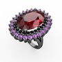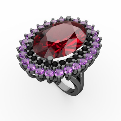 Garnet, siyah zirkon ve ametist 925 ayar siyah rodyum kaplama gümüş yüzük