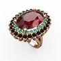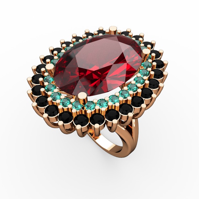 Garnet, yeşil kuvars ve siyah zirkon 18 ayar rose altın yüzük
