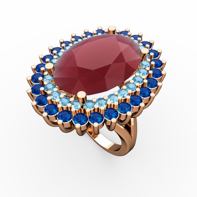 Kök yakut, akuamarin ve lab safir 8 ayar rose altın yüzük