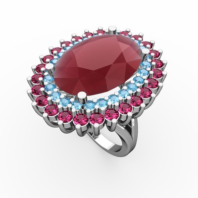 Kök yakut, akuamarin ve rodolit garnet 925 ayar gümüş yüzük