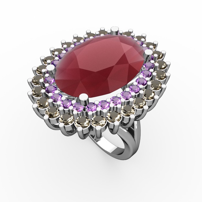 Kök yakut, ametist ve dumanlı kuvars 18 ayar beyaz altın yüzük