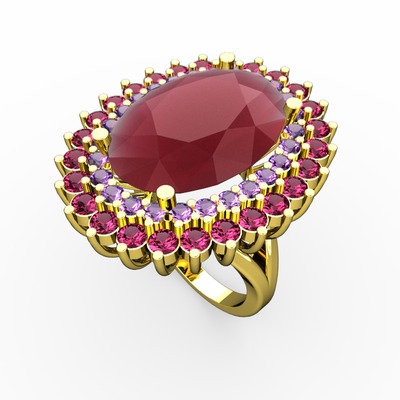 Kök yakut, ametist ve rodolit garnet 8 ayar altın yüzük