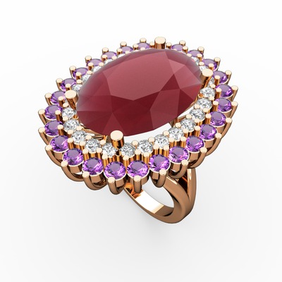 Kök yakut, beyaz zirkon ve ametist 8 ayar rose altın yüzük