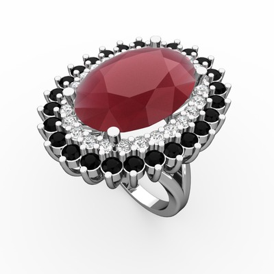 Kök yakut, beyaz zirkon ve siyah zirkon 925 ayar gümüş yüzük