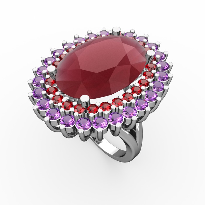 Kök yakut, garnet ve ametist 18 ayar beyaz altın yüzük