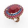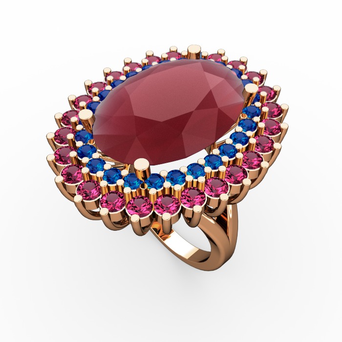 Kök yakut, lab safir ve rodolit garnet 18 ayar rose altın yüzük