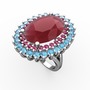 Kök yakut, rodolit garnet ve akuamarin 8 ayar beyaz altın yüzük