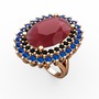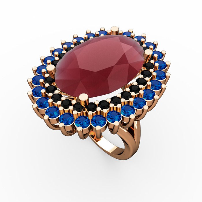 Kök yakut, siyah zirkon ve lab safir 14 ayar rose altın yüzük