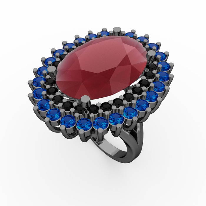 Kök yakut, siyah zirkon ve lab safir 925 ayar siyah rodyum kaplama gümüş yüzük