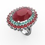 Kök yakut, yeşil kuvars ve garnet 18 ayar beyaz altın yüzük