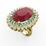 Kök yakut, yeşil kuvars ve swarovski 18 ayar altın yüzük